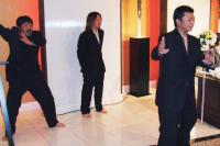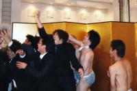 多忙の中にもかかわらず披露宴に来てくれたみなさんっ、ほんっとーにありがとうございましたぁ〜(≧▽≦)ゞあのサプライズを盛り込んだ(いきなり脱がされてステテコ姿に(T_T)……。)余興にはビックリしましたがいい思い出になりました。披露宴、二次会三次会と勢いが衰えることなく、青年部パワーを見ていた俺の同級生は『いつもこんなすごい飲み方してんのっ!(?□?;)!!』ってかなり驚いてたし。