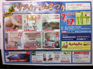 明日、7/17(日)は弊社恒例(と言っても震災の影響で遅くなりましたが)のリフォームまつりです。オトクな商品から、興味深い商品、楽しい商品など各種取り揃えて楽しく開催します!。