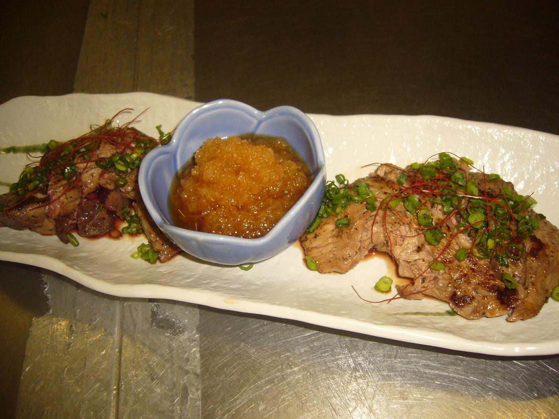 写真は、本まぐろの脳天あぶり・おろしポン酢。