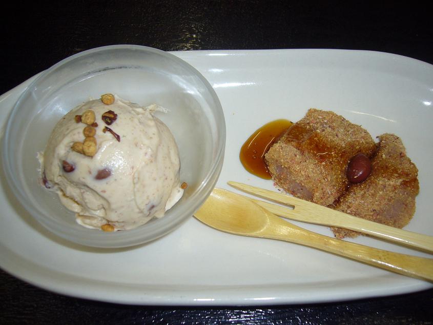 写真は紅大豆のアイスとくず餅。特にアイスはお客様からも
