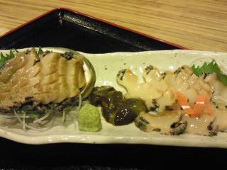 今日は、鮑(あわび)のお造りです!新鮮な北海道産の蝦夷鮑(えぞあわび)です。鮑好きのお客様のリクエストでした。大変喜んでいただき「やっぱりうまいな~!」と一言。お客様の喜ぶ顔が私たちの何よりのごちそうです!ありがとうございます。