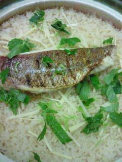 左の写真は、当店自慢の土鍋ご飯、「鯛飯」です。