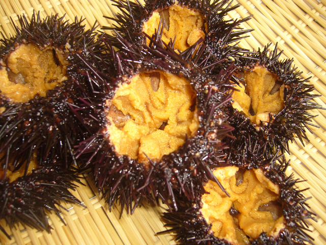 ウニも種類がございまして、ばふんウニに続いて、一回り大きいむらさきウニも入荷してきています。ぜひ、どうぞ!!
