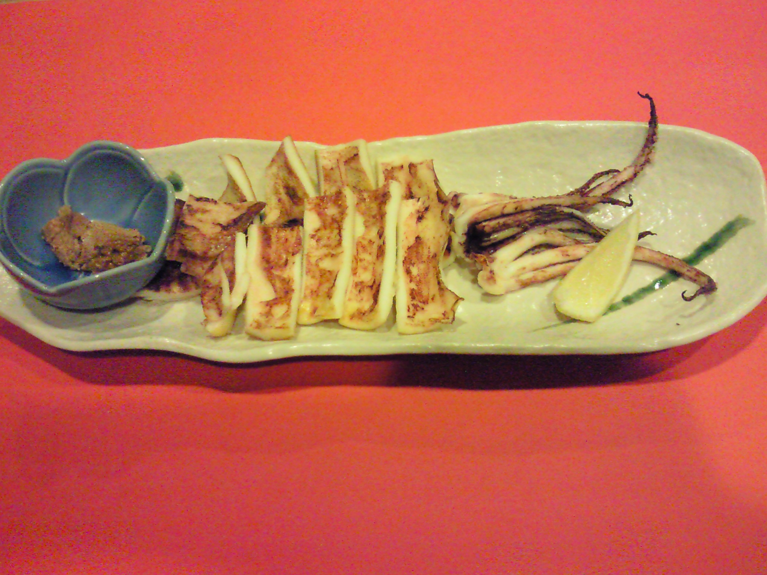 こちらは、烏賊(いか)の姿焼きです。軽く塩味ですが、肝付き、お好みでマヨプラスで、オススメに出すといきなりの完売!!!!