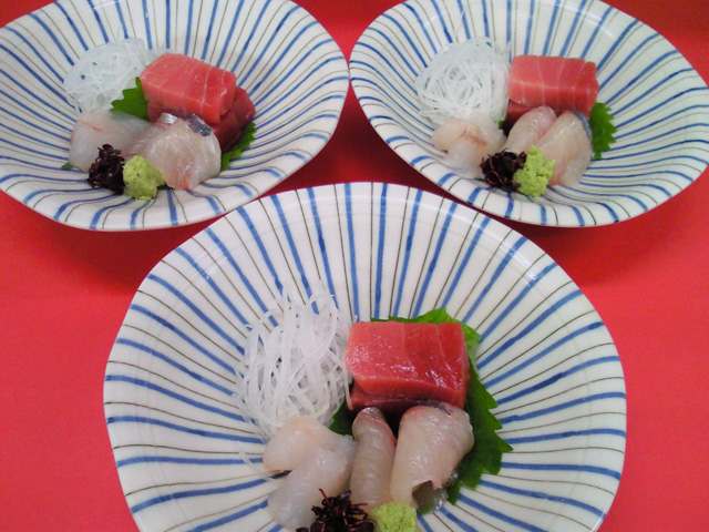 こちらの写真は、コースの一品に大間産本鮪・縞鯵・魴々のおいしいところです!!
