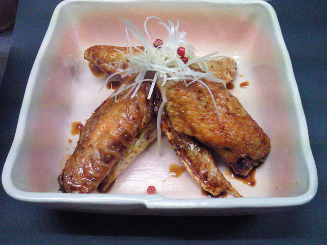 こちらは、人気の福島県産「伊達鶏の手羽先唐揚げ!!」自家製の甘辛ツケだれが合いますよ!!お酒がススミますよ~!!
