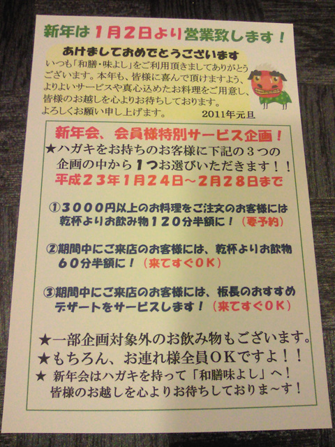 ●味よしからの「年賀状」お忘れじゃありませんか??