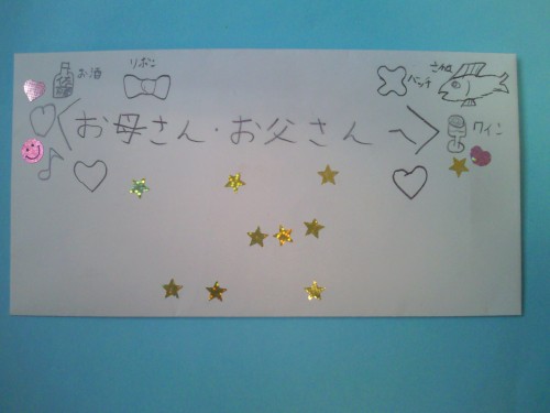 最後に手渡してもらった手紙は、親バカですが、宝物になりました。LOVEレターありがとう♥(ちなみに、息子の手紙には、味よしの長男らしく?魚とお酒が(苦笑)よく見てる・・・)