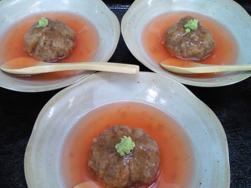 コチラは、味よしではコース料理の定番メニューになるくらい、皆様に人気の「蓮根まんじゅう」です。蓮根は、基本的に冬の食材ですが、和風ダシの効いた「あん」を春の梅風味で、仕上げてみました!色もかわいいですよね?