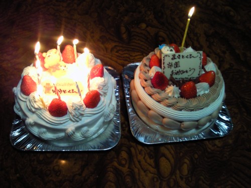 (内心・・・やっぱりケーキは小さくても二つにして良かった・・・家は大家族だし、ろうそくを俺が消す!消さないで醜い争いにならなくて・・・と思いました。主役達に、今日までゲンコツしたくないですしネ。)