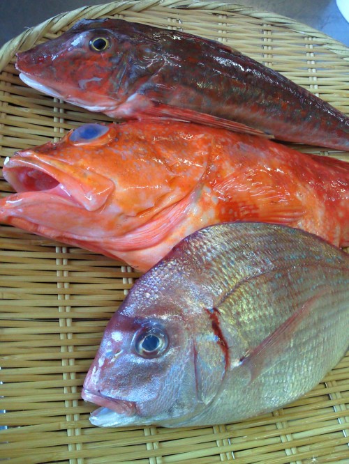 本日の鮮魚は、魴々(ほうぼう)・(笠子)かさご・(鯛)たいがオススメです!!