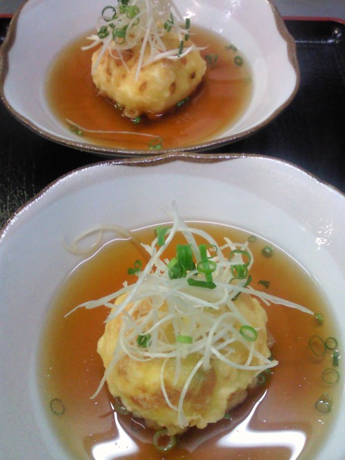 こちらが「たらの芽真丈玉〆」です。自家製玉子豆腐に旬のたけのこも入っています。アツアツです♬