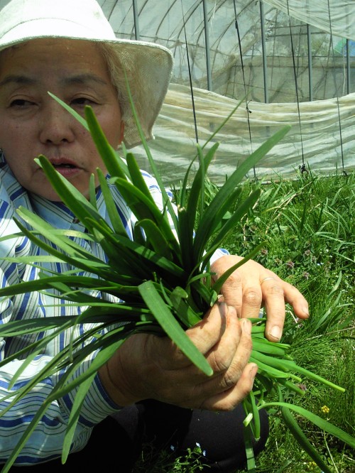 この中から、サッ!サッ!・・・と、にらだけ取り分けて見せて下さいましたが、香りも強く元気な野菜っていうのが本当によくわかりました。