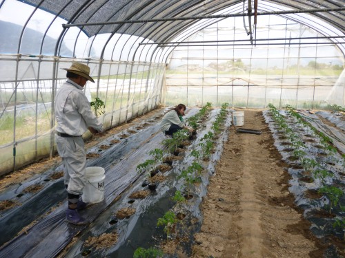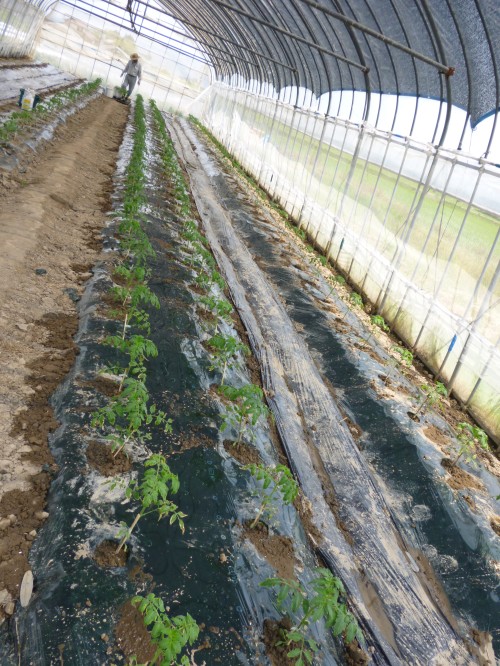 ●いよいよ、ハウスに植える育ったトマトの苗植えをお手伝いさせていただきました。