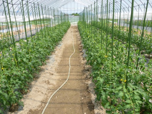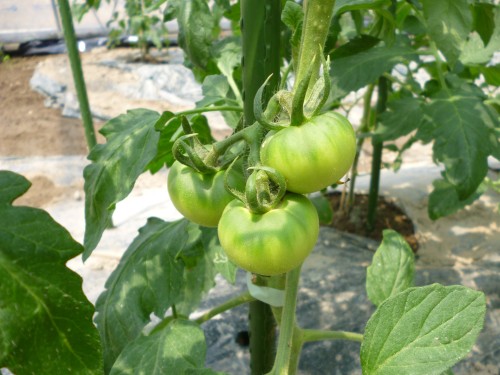 ここは、第一花房といって、まだまだトマトが大きくなる段階の途中ということになるのです。もちろん食べられますが、本当に出荷に向けての甘くて美味しい桃太郎のトマトの実は、この先にできるものなんだそうです。