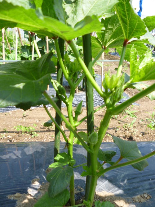 写真はオクラ!ちょうど花が咲いていました。キレイです♪