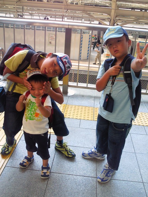 ●「行き」は、私、大人一人に対して子ども達男の子三人というハードな状況でした。人手不足対策を考えて、旅立つことに。