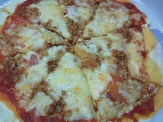 ★味よし「こちら人気の納豆とチーズのピザ!」