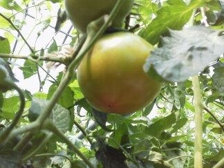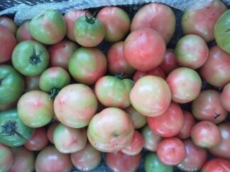 ●トマトにも種類があって・・・こちら、味よしでトマトスライスサラダにも使わせていただいているのは「桃太郎」です。形・・・わかりますか?