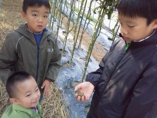 「ほら、母ちゃん、殿様ガエルだよ~!」