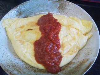 あっさりとした、チキンライスにふわふわのバターでとろけるような卵がかかっています!自家製のトマトソースで、もう決まり♪
