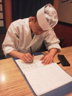 お越しいただいたお客様、お一人おひとりの、お召し上がりになったお料理の内容を控えておくことで、お好みを覚えておくこと・・・、そして、季節ごとにどんな旬のものをお召し上がりになったかを記録しているのです。