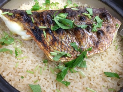 じっくり土鍋で炊き上げた地元川西町産のご飯と、焼き加減バッチリの鯛の美味しいところ♥