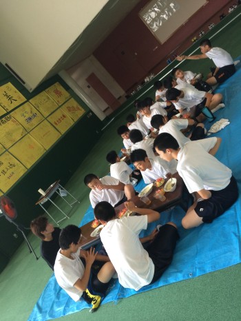 (写真は、夏合宿での昼食タイム!皆さん、写真掲載させていただきましたよ!!)
