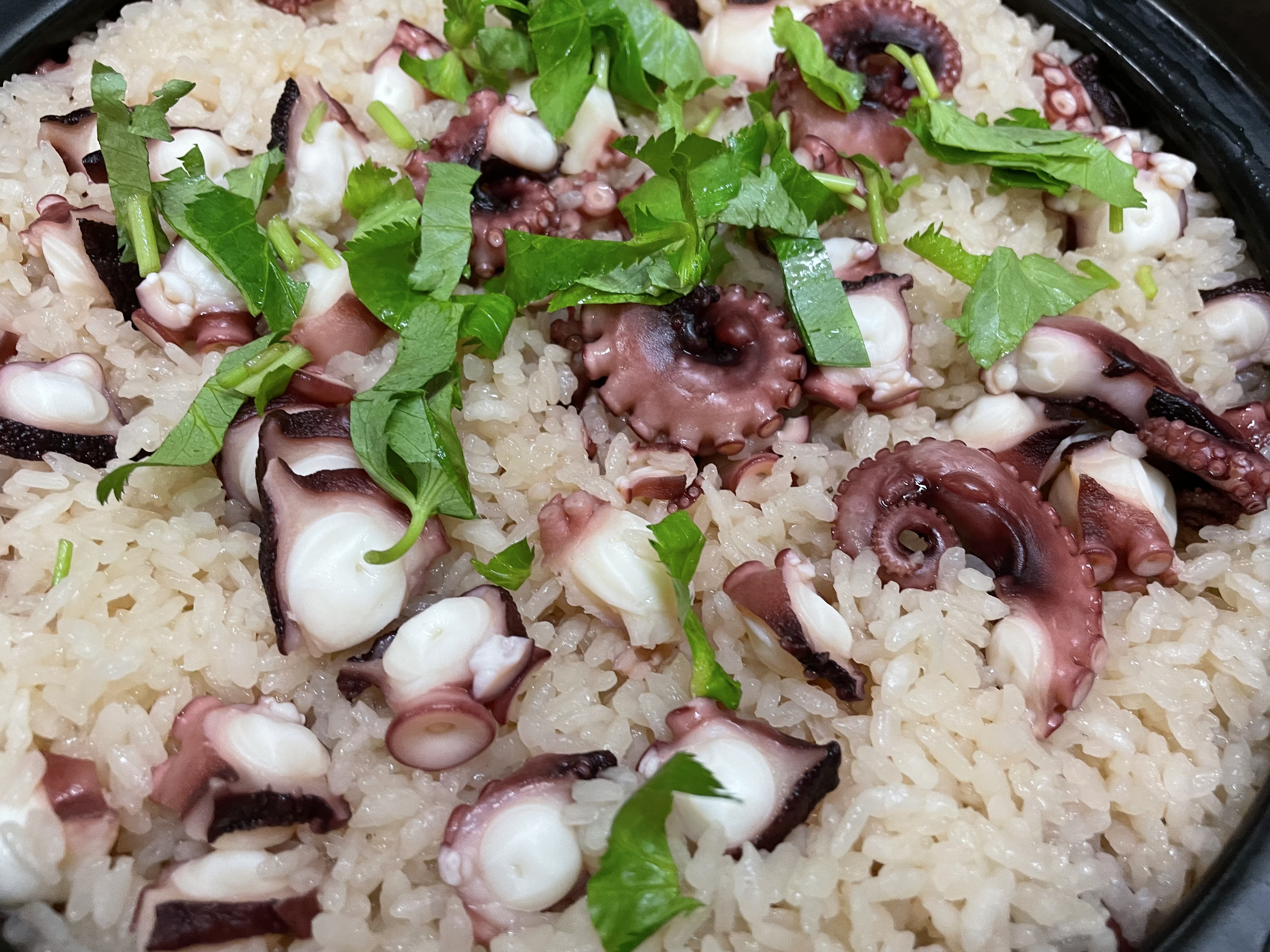 まずは、季節の土鍋ご飯…タコ飯です♡