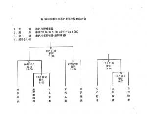 11月6日(土)〜7日(日)、山形西高等学校にて初戦は11月6日(土)午後1時から山形西高校と鶴岡北高校の勝者と対戦します。 同窓生の皆さん応援にいらしてください。 「組み合わせ表」 ↓ PDFファイルをご覧ください H22kenshinjinbasukekumiawase.PDF |