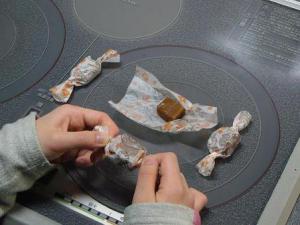 材料 (9cm×9cmの型 クッキングシートを敷いておく) 生クリーム・・・200ml グラニュー糖・・・160g 水・・・大さじ1 バター(有塩)・・・10g 岩塩・・・小さじ1/4 作り方 1,生クリームはレンジに30秒かけて温めておく。 2,鍋にグラニュー糖と水を入れ、強火にかける。グラニュー糖が溶けて 色づいてきたら弱火にして鍋を傾けながら、全体を均一なベージュ色に 焦がす。 3,火をいったん止めて 1 を加える。ワッと沸き立つがすぐにおさまる。は ねるので注意してね。 おさまったらバターを加えて再び弱火にか け、ヘラで混ぜながらゆっくり煮詰めていく。 4,全体にトロッと粘りが出てきたら、スプーンですくって、氷水を入れたコッ プに落としてみる。氷水の中でキャラメルが溶けずに固まったら煮詰め が完了したサイン。岩塩を加えてかき混ぜ、型に流す。 5,そのまま置いて粗熱が取れたら冷蔵庫に入れて固める。 6,包丁でカットして、一粒ずつワックスペーパーで包む。保存は冷蔵庫で。 ※煮詰め足りないと冷めても固まらないので、その時は生キャラメルソースとしてパンに塗ったり、アイスにかけてもGOODです。 アライグマ(昭和59年卒) |