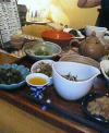 食前すりおろしリンゴジュースから始まり、苳とエゴマの煮物、アスパラと焼き玉葱のマリネ、高野豆腐の卵とじ、ヒジキとそーめんのサラダ、丘ヒジキ、カブのサラダ、紫ほうれん草とトマトを焼き上げたもの、玄米コロッケ、などなど・・・いや〜覚えてなくて、一緒に行った相方に思い出してもらい教えてもらいました。間違ってたらゴメンです。