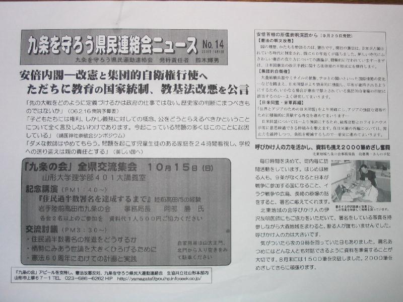 「九条の会全県交流集」10月15日(日)山形大学理学部401講堂