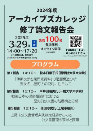 ËÜǯÅÙ¤Ï2̾¤ÎÊý¤Î¤´Êó¹ð¤È¡¢ºòǯÅ٤˹ñʸ³Ø¸¦µæ»ñÎÁ´Û¤ò¤´Â࿦¤µ¤ì¤¿Âçͧ°ìͺÀèÀ¸¤ÎµÇ°¹Ö±é¤òͽÄꤷ¤Æ¤ª¤ê¤Þ¤¹¡£ ¿··¿¥³¥í¥Ê¥¦¥¤¥ë¥¹´¶À÷¾É¤Î´¶À÷³ÈÂç¤Ëȼ¤¤¡¢2019ǯÅ٤ν¤Î»ÏÀʸÊó¹ð²ñ¤Ï³«ºÅÃæ»ß¤È¤Ê¤ê¡¢¤Þ¤¿2020ǯÅ٤ˤϥ¢¡¼¥«¥¤¥Ö¥º¥«¥ì¥Ã¥¸Ä¹´ü¥³¡¼¥¹¼«ÂΤ¬³«¹Ö¤µ¤ì¤Þ¤»¤ó¤Ç¤·¤¿¡£ ¤½¤Î¤¿¤á3ǯ¤Ö¤ê¤È¤Ê¤ëº£²ó¤Î½¤Î»ÏÀʸÊó¹ð²ñ¤Ï¡¢¥ª¥ó¥é¥¤¥ó²ñµÄ¥Ä¡¼¥ëZoom¤Ë¤è¤ëÁ´ÌÌ¥ª¥ó¥é¥¤¥ó³«ºÅ¤È¤Ê¤ê¤Þ¤¹¡£ Æü»þ¡¦Êó¹ðÆâÍÆ¤ò¤´³Îǧ¤Î¤¦¤¨¡¢¤´Í½Äê¤Ë²Ã¤¨¤ÆÄº¤±¤ì¤Ð¹¬¤¤¤Ë¸¤¸¤Þ¤¹¡£ ¥¢¡¼¥«¥¤¥Ö¥º¥«¥ì¥Ã¥¸¤ò¼õ¹Ö¤µ¤ì¤¿Êý¡¹¤ò¤Ï¤¸¤á¡¢¥¢¡¼¥«¥¤¥Ö¥º¤Ë¤´¶½Ì£¤ò¤ª»ý¤Á¤Î¤ß¤Ê¤µ¤Þ¤Î¡¢Âô»³¤Î¤´»²²Ã¤ò¤ªÂÔ¤Á¤·¤Æ¤ª¤ê¤Þ¤¹¡£ ¡Ú2021ǯÅÙ¥¢¡¼¥«¥¤¥Ö¥º¥«¥ì¥Ã¥¸½¤Î»ÏÀʸÊó¹ð²ñ¡Û Æü»þ¡§2022ǯ3·î27Æü¡ÊÆüÍËÆü¡Ë14:00¡Á17:20 ³«ºÅÊýË¡¡§¥ª¥ó¥é¥¤¥ó²ñµÄ¥Ä¡¼¥ë¡ÖZoom¡×¤Ë¤è¤ëÁ´ÌÌ¥ª¥ó¥é¥¤¥ó³«ºÅ 3·î20Æü¤Þ¤Ç¤Ë¡¢²¼µ¤ÎGoogle¥Õ¥©¡¼¥à¤«¤é¤´ÅÐÏ¿¤¯¤À¤µ¤¤¡£ https://forms.gle/1aTaWBTYkRL35Ae7A Âè1Êó¹ð¡¡14:10¡Á ·ª¸¶È»¿Í»á¡ÊÃæ±ûÂç³ØÂç³Ø±¡¡Ë ¡ÖÀï¹ñÂç̾ÂçÆâ»áȯµëʸ½ñ¤Î¥¢¡¼¥«¥¤¥Ö¥º³ØÅª¸¦µæ¡× Âè2Êó¹ð¡¡15:10¡Á ¹¾Æ£ÆØÈþ»á¡Ê³ô¼°²ñ¼Ò¥ï¥ó¥Ó¥·¥¢¡¼¥«¥¤¥Ö¥º¡Ë¡ÖÅÅ»Òʸ½ñ¤Î´ÉÍý¤ÈÊݸ¡½Ì±´Ö´ë¶È¤Î»öÎãʬÀÏ¡½¡× µÇ°¹Ö±é¡¡16:10¡Á Âçͧ°ìͺÀèÀ¸¡Ê¹ñʸ³Ø¸¦µæ»ñÎÁ´Û̾ÍÀ¶µ¼ø¡Ë¡Öºß³°ÆüËÜ»ñÎÁ¤Î¾ðÊó»ñ¸»²½¤Î¼è¤êÁȤߡ½¥Ð¥Á¥«¥ó¿Þ½ñ´Û½ê¢¥Þ¥ì¥¬»ñÎÁ¤ò»öÎã¤Ë¡½¡× ¢¨»²²ÃÈñ̵ÎÁ ¢¨Äê°÷100̾¡ÊÀèÃå½ç¡Ë |
