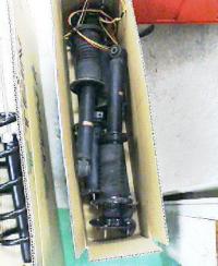 複筒式で伸び側のみ減衰力を無段階に調整できるなどかなり凝ったつくりで、arulaboが考える運動特性に合致していました。 しかし、適合が出ているもののロッド径が12mmで純正の10mmよりも太く、アッパーマウントを加工しないと取付できないことや、日本国内に製造拠点やメンテナンス施設がなく、製品の購入やオーバーホールがヨーロッパからの輸入になることから、アフターサービスが心配だったために、なんとなく躊躇しました。  |