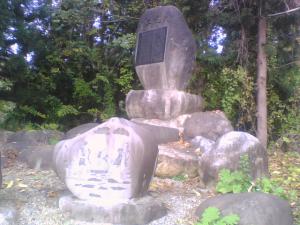 白布温泉にある鉄砲鋳造の碑。直江兼続は