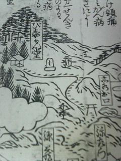 が塩田を作って温泉から塩をとっていた寛政期の 版画と思われます。明治の小野川よりももっと 多くの宿があったことがわかります。大火があったので 整理されたのでしょう。 |