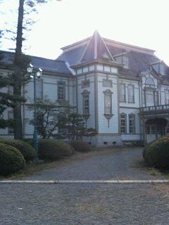 入り口です。この建物は、米沢出身の建築家 中条誠一郎の作品で、慶應義塾の図書館や 山形の旧県庁も文化財で、同じく中条誠一郎 の作品です。中を一般公開していますので、山大 工学部正門、警備室でお問い合わせください。 |