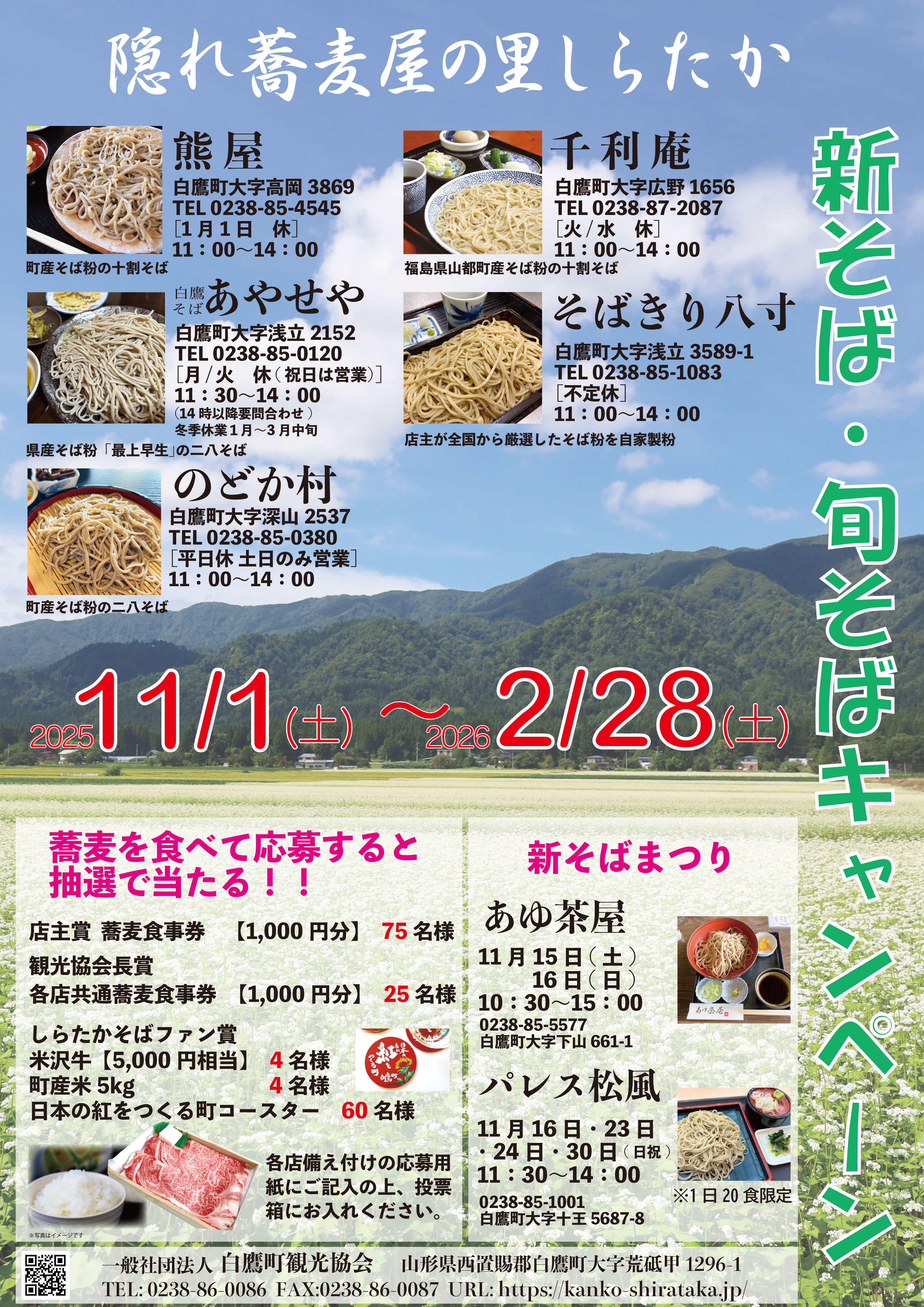 11月1日(土)からは「隠れ蕎麦屋の里しらたか新そば・旬そばキャンペーン」を開催いたします。