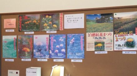 白鷹町文化交流センターあゆーむで開催中の「紅花colors」会場に今野正明さんからお借りした大変貴重な『白鷹紅花まつり』第1回からのポスター展も開催中です。ポスターから白鷹紅花まつりの歴史を感じてみませんか。アート展と合わせてぜひご覧ください。