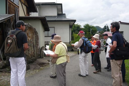 8/30(土)荒砥駅から出発して「導き地蔵」「称名寺」「つぶて石」などミステリーハンター?!として、しらたか旅先案内人さんのお話をお聞きしながら徒歩で白鷹の歴史をめぐりました。