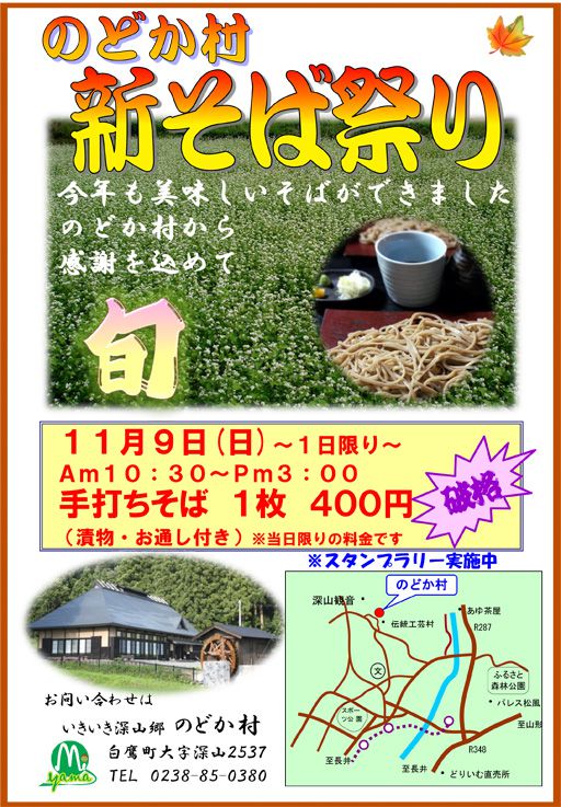 11月9日(日)にのどか村新そば祭りが開催されます。
