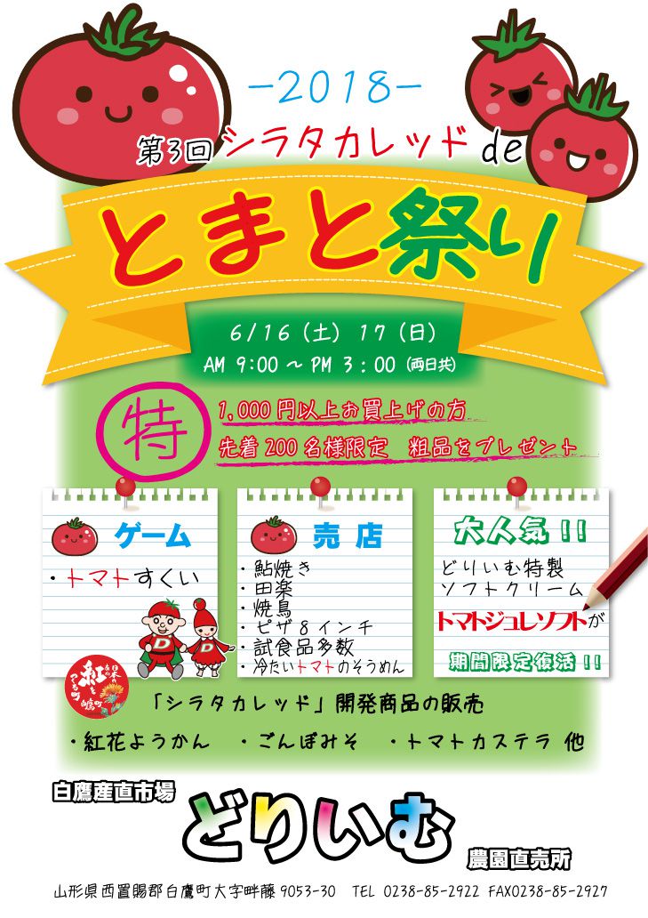 シラタカレッドの一角を担う「とまと」の祭りのお知らせです。