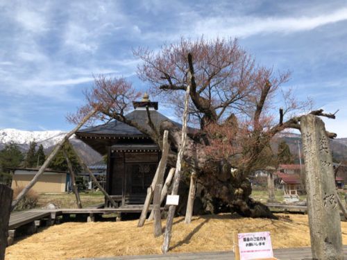 朝はまだ蕾だった薬師ザクラ、午後になって数輪開花してきました!殿入ザクラ、称名寺阿弥陀堂の桜、薬師ザクラ開花しています。写真は朝の様子です。十二の桜茶屋も本日からオープン。名物「夜中のかいもち」をどうぞご賞味ください。