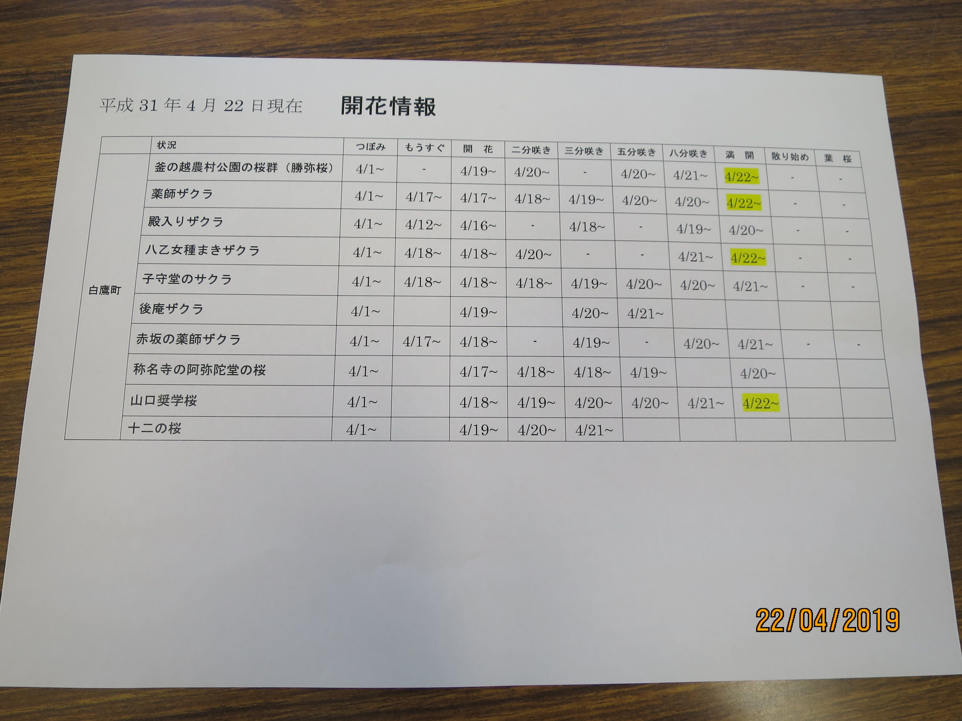 本日朝の桜の開花情報をご覧ください。ほとんどの桜が見頃を迎えています。