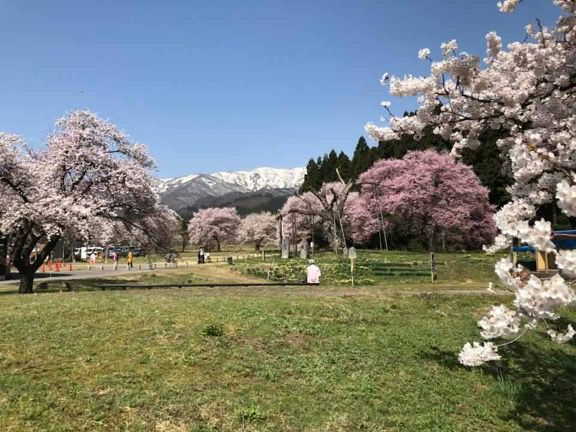 残雪と満開の桜 釜の越農村公園