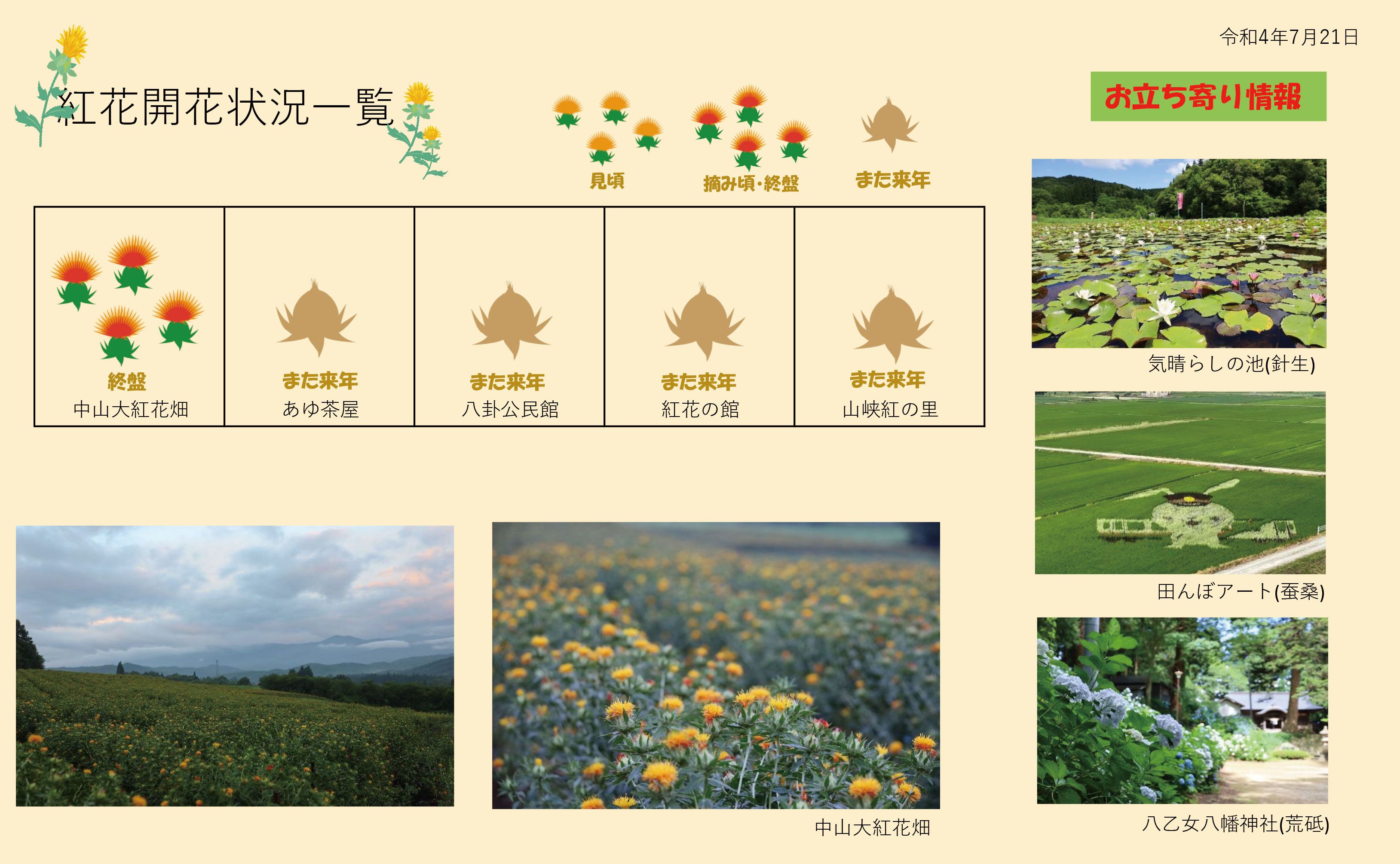 町内の紅花畑もほとんどが摘みも終わり、中山地区のみ摘み時期の終盤を迎えております。