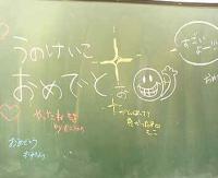 画像はその子を祝福する黒板の落書き…小さいコメントにはくどいくらいに『もっこりこもみち』が出現。