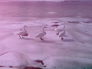 近くの川に、白鳥がたくさんいました。