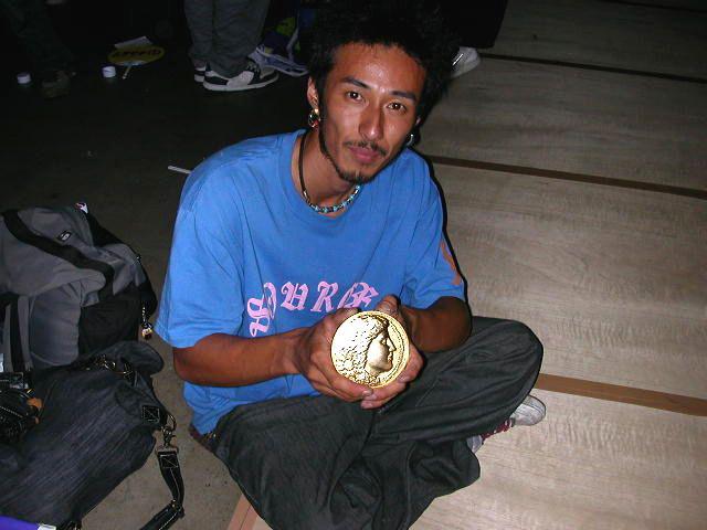 表彰式では2位前畑悠紀と二人に受賞の「メダル」を後ろ手に渡し